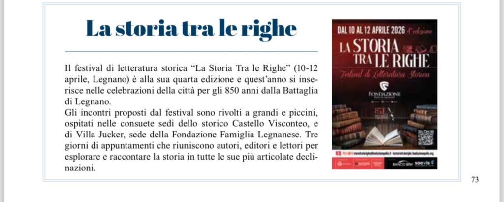 La storia tra le righe è un festival annuale dedicato alla letteratura storica, che si tiene a Legnano, in Lombardia. Nato con l’intento di esplorare il passato attraverso la narrativa e la saggistica, ha creato un’opportunità unica di incontro tra pubblico, autori, storici e esperti del settore.