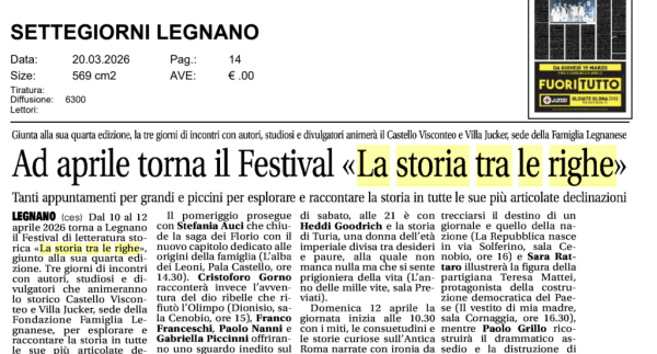 Dal 10 al 12 aprile 2026 torna a Legnano il Festival di letteratura storica “La storia tra le righe”, giunto... Leggi tutto