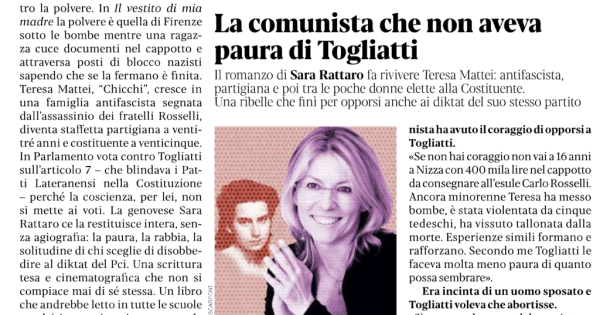 Il romanzo di Sara Rattaro fa rivivere Teresa Mattei: antifascista, partigiana e poi tra le poche donne elette alla Costituente.... Leggi tutto